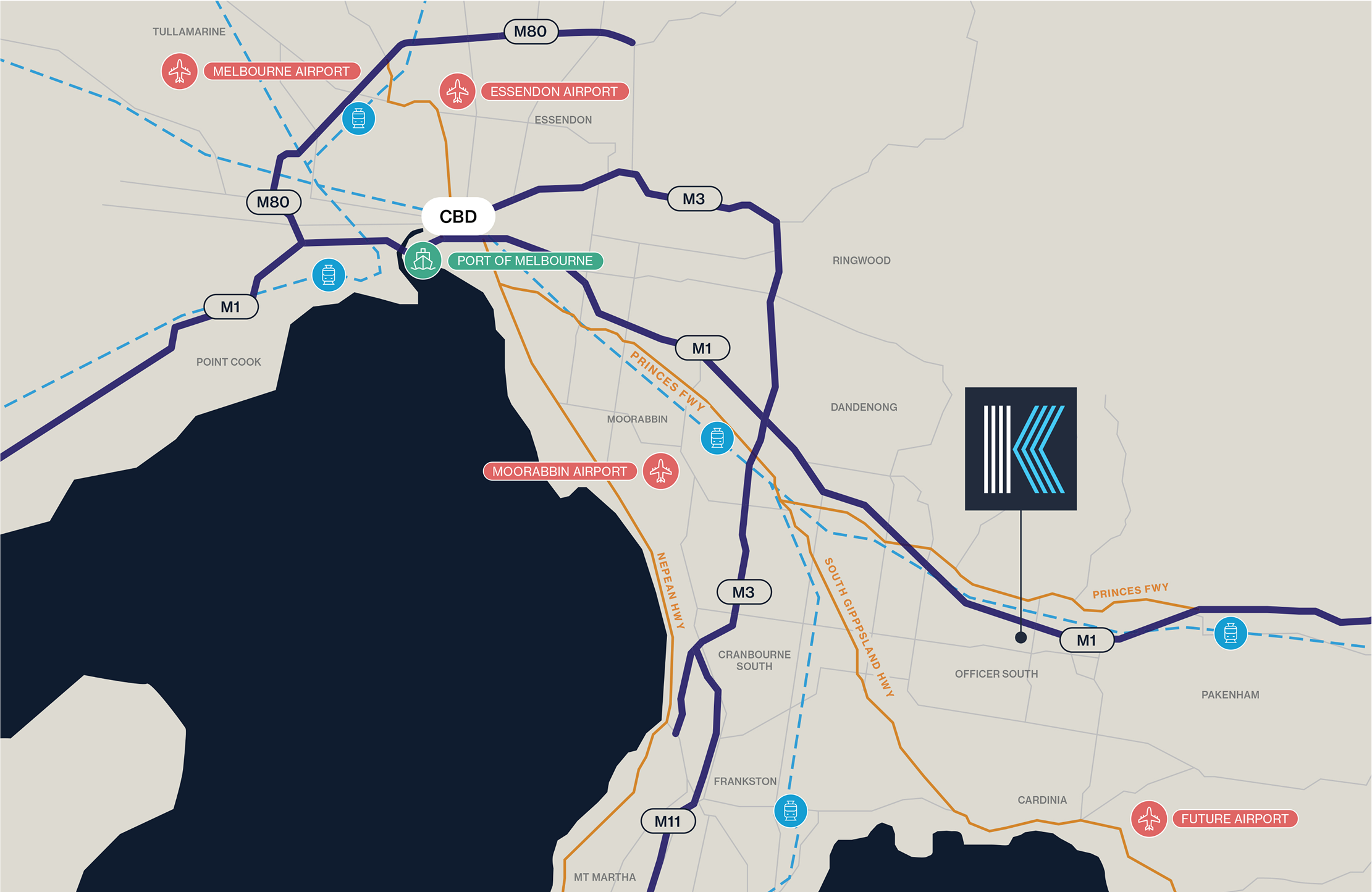Kaduna Business Park is located in a key development corridor within the Cardinia Road Employment Precinct (CREP) on Cardina Road, Officer South. This 83.5 ha master-planned Business Park is surrounded by developing residential estates with easy access to major aterial roads.
